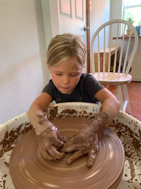 Marriage can be beautiful and fulfilling, especially when children are involved but marriage can also be challenging and frustrating, especially when children are involved. Relationships are work. Conor and I have our challenging moments together. However, I feel so grateful for my life partner. When we do not get along, he is willing to get to the root of the problem with the hope that we both grow as individuals and as a couple. He wants to talk it out and most of the time, he really listens to what I am feeling. At the end of our day filled with work and kids and meals and games and crying and books and songs and snuggles, when we both fall exhausted into bed, he genuinely thanks me for taking care of the kids and doing the dishes. He loves me very deeply and he honors me in a way that I have never felt before life with him. When I said I wanted to get yoga teacher certified about the same time he first went back to work at the hospital, he said "Do it! Sign up now and we will figure out later who will watch baby Woody." He could tell it was something I felt deeply about and he honored that in me. In Panama, we rearranged the schedule so I could go to a pottery class because working with clay makes me feel happy and peaceful. He saw that in me and encouraged me to go. And now, we are back in Indialantic and he's back at the hospital full time and I just ordered a pottery wheel. When I told him I was wanting to order one and asked what he thought about, he excitedly told me "Do it! Order it and I'll start my list of all the things I want you to make!" He sees me. He knows me. He honors me. He does not think it is silly that I watercolor or want to be a potter. He sees me listening to myself and what makes me happy and fulfilled and he honors that in me. To be seen and heard and encouraged to follow my passions is a true gift in life. Being a wife and a mother was something I always wanted in life and those roles will always be my greatest joys. However, the moment I mention that I would like this little other piece of me too, Conor always says to me, "Lets do it." And the funny thing is I think it's something for myself but it seems to weave its way through the rest of us as well. My loves and interests become my family's loves and interests. We do family yoga classes together. All the kids love to paint and play with clay. The big kids are actually intuitively good at the wheel. As an adult, it's beautiful to watch a child make art without any inhibitions from the world telling them they are doing it wrong. Their style and ideas have no boundaries. Their self confidence in themselves is inspiring! I see it strong in the girls but as Woody gets older, I can see him starting to be self critical. It is such a special time to acknowledge that and tell him that art knows no right or wrong. Art knows no boundaries. You don't have to be traditionally talented or go to art school (hello, look at your mom!) to make beautiful expressions of art. If you feel happy creating, then your art is magic.
